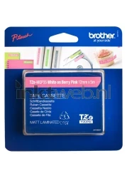 Originele gelamineerde lettertape van Brother, de TZE-MQP35. De kleuren zijn wit op berry roze. De tape is 5 meter lang en 12mm breed.