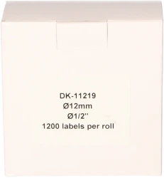 FLWR huismerk als vervanger voor Brother DK-11219 ronde labels. De afmetingen zijn 12mm bij 12mm. Bevat 1200 labels.