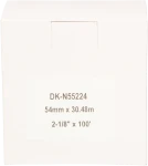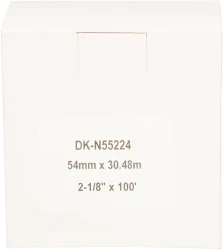 Huismerk als vervanger voor Brother DK-22225 thermische labelrol. Breedte 54mm en een doorlopende lengte van 30 meter. Door de doorlopende tape is het ideaal voor labels van verschillende lengtes, bijvoorbeeld voor dossiers, mappen of bezoekerspassen.