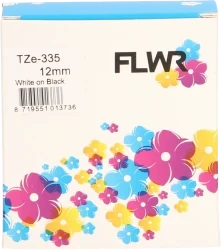 FLWR huismerk compatible Brother TZ-335 lettertape. De lettertape bestaat uit witte letters op zwarte tape.
