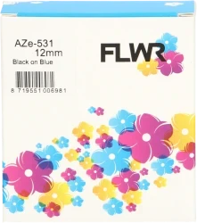 Huismerk Brother TZE-531 gelamineerde lettertape. Deze tape heeft de kleuren zwart op blauw. 12mm breed en 8m lang.