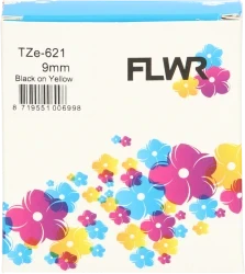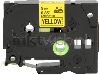 Huismerk Brother TZE-621 gelamineerde lettertape. Deze tape heeft de kleuren zwart op geel. 9mm breed en 8m lang.