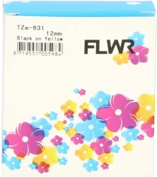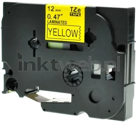 Huismerk Brother TZE-631 lettertape voor gebruik in de Brother P-touch printers. 0.47", 12MM breed en 8 meter lang. Het betreft hier zwart op gele tape.