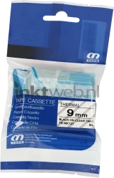 Compatible MK-121 letter tape voor de P-touch series van Brother, zwart op transparant. De tape is 9mm breed en heeft een lengte van 8 meter.