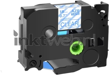Blauw op transparante tape en zelfklevend.