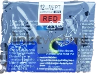 De kleur van dit lettertape is zwart op rood. De tape is glazen gelamineerd.