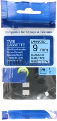 Brother compatible lettertape TZE-521. Het betreft hier zwarte letters op 8 meter blauwe tape.