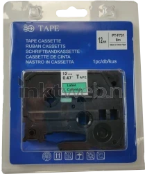 Huismerk Brother TZE-731 lettertape. De kleur is zwart op groen. 12mm breed en 8 meter lang.