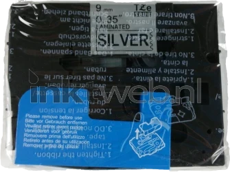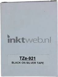 Huismerk compatible Brother TZe-921 lettertape zwarte letters op zilveren tape.