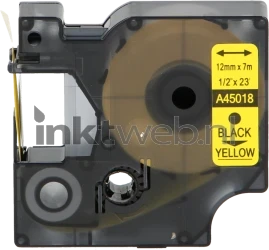 Huismerk Dymo 45018 lettertape, vervangt S0720580. Geschikt voor gebruik in de Dymo LabelManager printers. 0.47", 12mm breed en 7 meter lang. Zwart op gele tape.