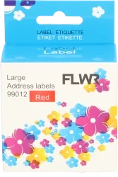 FLWR Compatibel label voor Dymo 99012 in de kleur rood, vervangt S0722400, in een mooie FLWR box. Dit is het meest gebruikte formaat label en is uitstekend geschikt voor het printen van adres etiketten of het labelen van mappen en diverse verpakkingsmaterialen.
