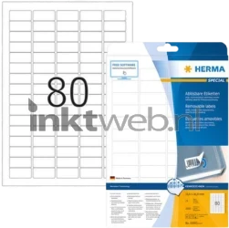 Herma verwijderbare papieretiketten rechthoek op A4-vellen. Deze stickers zijn na gebruik makkelijk te verwijderen zonder een spoor achter te laten. Perfect voor barcodes en prijs labels.