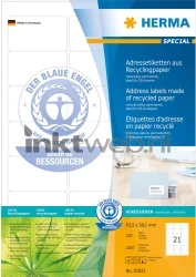 Natuurlijk witte gerecyclede Herma 10822 adreslabels op A4-vellen. 100 stickervellen met ieder 21 labels, wat een totaal maakt van 2100 labels. De afmeting van deze labels is 63,5 x 38,1 millimeter. De labels zijn tevens zelfklevend en ideaal voor het adresseren en labelen.
