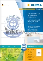 Ideaal voor het adresseren en labelen, deze 10825 witte, zelfklevende A4-adresetiketten van Herma. De labels zijn 99,1x33,8 millimeter en van 100% gerecycled papier. Per verpakking 1600 etiketten. 100 vellen met daarop 16 stickers.