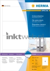 Herma 4284 zelfklevende witte etiketten op A4-vellen. Permanent hechtend. Deze stickers zijn perfect geschikt voor alle laser- en inkjetprinters en kopieerapparaten. De etiketten zijn 100 % recyclebaar met het oud papier. . De verpakking is van gerecycled karton.