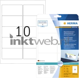 Herma verwijderbare papieretiketten rechthoek op A4-vellen. Deze stickers zijn na gebruik makkelijk te verwijderen zonder een spoor achter te laten. Na het verwijderen van de stickers kun je deze meerdere keren herplakken.
