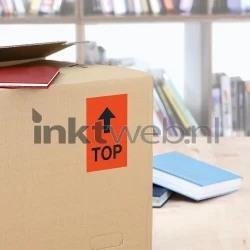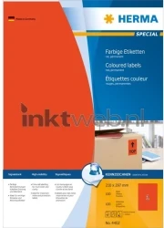 1 vel beschikt over 1 label, de kleur van de labels zijn rood. De afmeting van de labels zijn 210 millimeter x 297 millimeter.