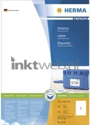 Herma 4428 stickervellen. Dit artikel betreft één zelfklevend permanent hechtend A4 (210 x 297 MM) vel en is perfect voor gebruik in alle laser- en inkjetprinters. In de verpakking zitten totaal 100 vellen.