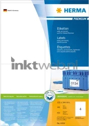De afmeting van deze Herma 4454 zelfklevende en permanent hechtende A4-adreslabels is 105x144 millimeter. De labels zijn gemaakt voor alle laser- en inkjetprinters, kleurenlaserprinters en kleurenkopieerapparaten. In de verpakking zitten 400 adreslabels (100 stickervellen met ieder 4 labels).