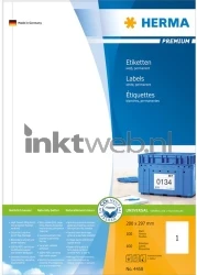 Herma 4458 zelfklevende witte etiketten op een A4 vel. Deze stickers zijn perfect geschikt voor alle laser- en inkjetprinters en kopieerapparaten. Herma staat niets voor niets bekend om de uitstekende prijs/kwaliteit verhouding van haar labels.