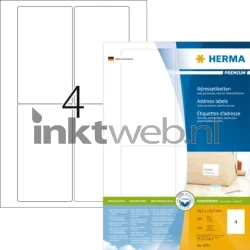 Deze 4472 Herma adreslabels van 78,7x139,7 milliliter zijn geschikt voor alle laser- en inkjetprintes, kopieerapparaten, kleurenlaserprinters en kleurenkopieerapparaten. De verpakking bevat 100 A4-vellen, per vel 4 labels en zijn tevens zelfklevend en permanent hechtend.