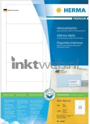 Permanent hechtende adresetiketten van 88,9x46,6 millimeter, 12 stickers per A4-vel, totaal 1200 labels. Deze zelfklevende witte Herma 4666 stickervellen zijn perfect geschikt voor alle laser- en inkjetprinters, kopieerapparaten, kleurenlaserprinters en kleurenkopieerapparaten.