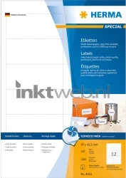 Herma 4816 witte inkjet-etiketten van 97 x 42,3 millimeter. Deze A4-etiketten zijn speciaal geschikt voor inkjetprinters en tevens zelfklevend. Deze verpakking bevat totaal 1200 labels, 100 stickervellen, 12 labels per stickervel.