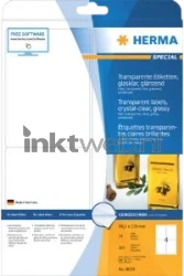 Herma Permanente transparante labels. Deze labels hechten goede op alle gladde, droge, onbeschadigde en stofvrije oppervlakken. Zeer goede drukresultaten op alle laserprinters, kopieerapparaten, kleurenlaserprinters en kleuren kopieerapparaten.