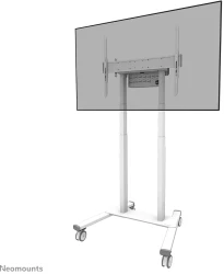 De Neomounts FL55-875WH1 MOVE Lift is een mobiele vloersteun voor displays tot 100" met een maximaal draagvermogen van 110 kg. De trolley heeft 65 cm gemotoriseerde hoogteverstelling (35 mm/seconde), wordt bediend middels een bedrade afstandsbediening en is voorzien van een anti-collision systeem voor extra veiligheid. Een afsluitbaar, geventileerd hardware compartiment met kabelopening is inbegrepen en optioneel voor installatie. De MOVE Lift trolley heeft praktische handgrepen en vier stevige dubbele vergrendelbare zwenkwielen van 10 cm, waarmee de trolley eenvoudig verplaatst kan worden en gebruikt waar je maar wilt. Dankzij de grote zwenkwielen vormen drempels of tapijten geen uitdaging voor de FL55-875WH1. Door de open wielbasis is het (touch)display goed toegankelijk en kan eenvoudiger om voorwerpen heen gemaneuvreerd worden. De meegeleverde kabelgoot, optioneel te installeren, verbergt en leidt de kabels van de vloersteun naar het scherm. De vloersteun heeft een praktische kabelmanagementbeugel aan de achterzijde, voor eenvoudige en veilige verplaatsing. Bovendien is aan de onderkant van de trolley een ruimte met tie-wrapgaten aanwezig voor de installatie van een stekkerdoos. De vloersteun is gedeeltelijk voorgemonteerd verpakt, voor een snelle en eenvoudige installatie. Het scherm kan worden beveiligd door de beugels te vergrendelen met een hangslot (niet meegeleverd). Bovendien is de FL55-875WH1 compact verpakt voor geoptimaliseerd transport en opslag. De universele AFL-875WH1 en AV1-875BL videobar & multimedia kits zijn optioneel beschikbaar en maken de installatie van een separaat camera-plateau en multimedia-plateau op de trolley mogelijk. Bij de kits inbegrepen is een adapter voor respectievelijk de Logitech Rally Bar (Mini) of Bose Professional VB-S/VB1. Tevens zijn diverse andere accessoires beschikbaar voor de MOVE Move Lift serie, zoals de ADM-875WH2 dual screen adapter of de praktische ABL-875 wielremsloten-set.