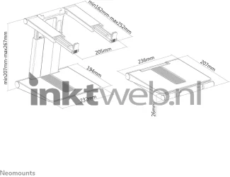 De Neomounts NSLS200 is een universele standaard voor laptops van 10" tot 17", met een maximum draagvermogen van 5 kg. De standaard heeft 7 verschillende hoogteposities, diepteverstelling en een slim opvouwbaar ontwerp. Het lichtgewicht, compacte ontwerp maakt de standaard ideaal om mee te nemen waartoe je maar wilt. De open configuratie zorgt voor een goede ventilatie van de laptop en de siliconen anti-slipkussentjes en randstopbeveiliging zorgen voor een solide positionering.