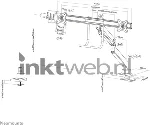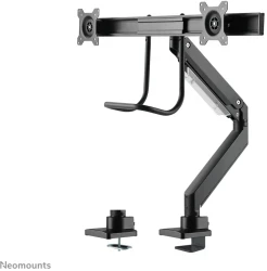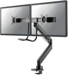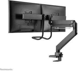 Met deze Neomounts monitorarm met hendel, model NM-D775DXBLACK, bevestig je twee flatscreens aan het bureau via een bureauklem. Door gebruik te maken van een monitorarm profiteert je optimaal van de mogelijkheden van je monitor. De monitorarm is eenvoudig in hoogte en diepte te verstellen. Tevens kun je het scherm kantelen, zwenken en roteren. Hierdoor creëer je de ideale ergonomische werkhouding. Dit verkleint de kans op nek- en rugklachten. Kabels zijn netjes weg te werken aan de onderzijde van de horizontale arm. De arm beschikt over een 180° stopmechanisme. De NM-D775DXBLACK met hendel heeft 3 draaipunten en is geschikt voor schermen t/m 32" (81 cm). Het draagvermogen van de arm is 1 tot 16 kg (max. 8 kg per scherm). Dit product is geschikt voor schermen met een VESA gatenpatroon van 75x75 mm of 100x100 mm. Heb je een afwijkend (groter) gatenpatroon, dan kun je dit oplossen met een van onze VESA verloopplaten.