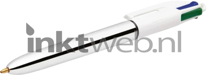 BIC 4-kleuren pen met een lijnbreedte 1 mm. De pen is voorzien van de kleuren groen, rood, blauw en zwart. Product bevat 1 pen.