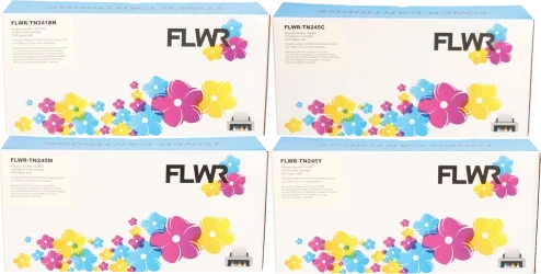 FLWR toners kunnen gebruikt worden als alternatief voor de originele Brother TN-241 zwart en Brother TN-245 cyaan, magenta en gele toners.