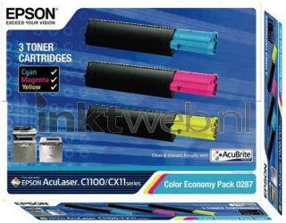 Bestaat uit S050191, S050192 en S050293. Dit is een Economy pack en bestaat uit 3 cartridges in de kleuren cyaan, magenta en geel. Capaciteit 1.500 pagina's.