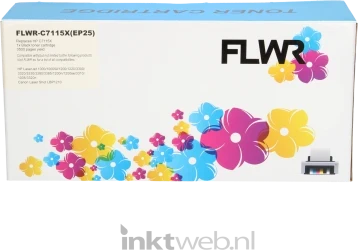 FLWR 15X LaserJet toner in de kleur zwart. Vervangt de originele OEM C7115X. Deze huismerk toner is maximaal gevuld en kan tot wel 4250 pagina's printen.