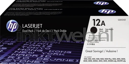 HP Q2612AD tonercartridge zwart dual pack. Capaciteit 2 x 2.000 pagina's.