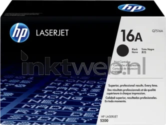 HP Q7516A (16A) toner zwart (origineel). Originele HP toner, normale capaciteit 12.000 afdrukken. Ook bekend onder HP-nummer 16A.