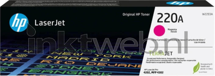 De HP 220A magenta toner is gemaakt voor het printen van hoogwaardige afdrukken die lange tijd goed blijven. De toner heeft een capaciteit van 1.800 pagina's, waardoor de kosten per pagina relatief laag liggen. Geschikt vaar de HP Color LaserJet Pro 4202 en HP Color LaserJet Pro MPF 4302.