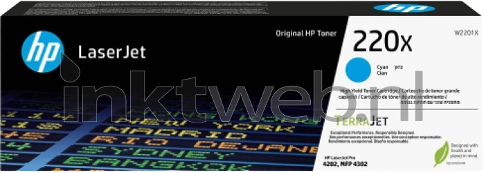 De HP 220X cyaan toner is gemaakt voor het printen van hoogwaardige afdrukken die lange tijd goed blijven. De toner heeft een capaciteit van 5.500 pagina's, waardoor de kosten per pagina relatief laag liggen. Geschikt vaar de HP Color LaserJet Pro 4202 en HP Color LaserJet Pro MPF 4302.