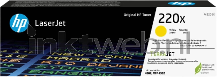 De HP 220X geel toner is gemaakt voor het printen van hoogwaardige afdrukken die lange tijd goed blijven. De toner heeft een capaciteit van 5.500 pagina's, waardoor de kosten per pagina relatief laag liggen. Geschikt vaar de HP Color LaserJet Pro 4202 en HP Color LaserJet Pro MPF 4302.