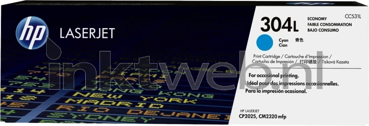 HP 304L cyaan LaserJet tonercartridge. Deze Economy cartridge heeft een gemiddelde opbrengst van 1400 standaardpagina's.