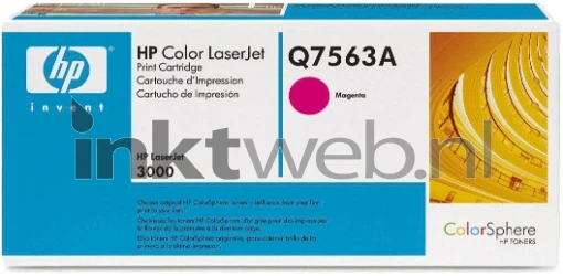 HP Colour Laserjet Q7563A toner magenta (origineel). De Color LaserJet 3000 printing supplies met HP ColorSphere toner en HP's intelligente printtechnologie optimaliseren de kwaliteit en betrouwbaarheid voor snelle, consistente, schitterende resultaten. HP's intelligente printtechnologie in HP supplies en de printer is geheel afgestemd op de unieke eigenschappen van HP's nieuwe toner om probleemloos te werken, met een hogere productiviteit en lagere printkosten.