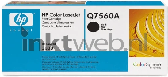 HP Colour Laserjet Q7560 toner zwart (origineel). Deze cartridge vervangt de HP Q7560A en heeft een capaciteit van 6500 afdrukken bij 5% paginadekking (5% dekking komt overeen met een volle tekstpagina).