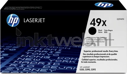 HP Q5949X (49X) toner zwart (origineel HP) hoge capaciteit. Originele HP toner, hoge capaciteit 6.000 afdrukken. Ook bekend onder HP-nummer 49X. Dit is de grote uitvoering (qua inhoud) van de HP Q5949A. Let op, deze toner past niet in de HP laserjet 1160.