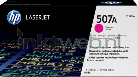 Originele tonercartridge voor de HP 507A in de kleur magenta. Capaciteit: 6.000 pagina's.