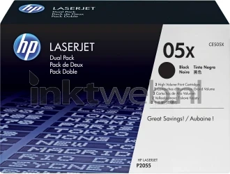 HP CE505X (05X) toner zwart hoge capaciteit (origineel HP) Originele HP toner zwart, hoge capaciteit: 6.500 pagina's. Deze originele HP CE505X hoge capaciteit toner zwart zorgt voor jarenlang houdbare documenten met scherpe lijnen, strakke tekens en levensechte kleurenafbeeldingen. U kunt uw print direct uit de printer verder gebruiken, zonder het risico op vlekken of vegen. Dit is de extra grote capaciteit versie.