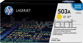 Remanufactured HP toner: 503A geel (typenummer Q7582A). Deze kleuren toner heeft een capaciteit van circa 6000 pagina's op een paginadekking van 5%.