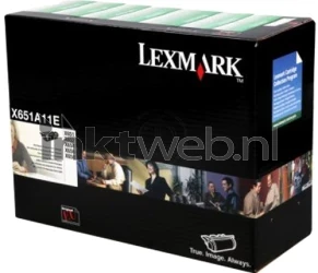 Originele Lexmark X651A11E tonercartridge in de kleur zwart. Capaciteit: 7.000 pagina's.