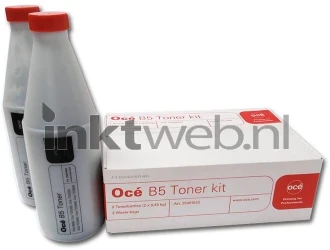 Oce B5 tonerkit, wordt geleverd in 2 flessen (2 x 450 gr.) met 2 rest-toner afvalzakken.