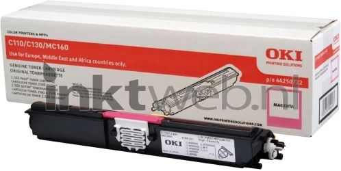 Originele toner cartridge voor de Oki C110 en de C130 in de kleur magenta. Capaciteit: 2.500 pagina's.